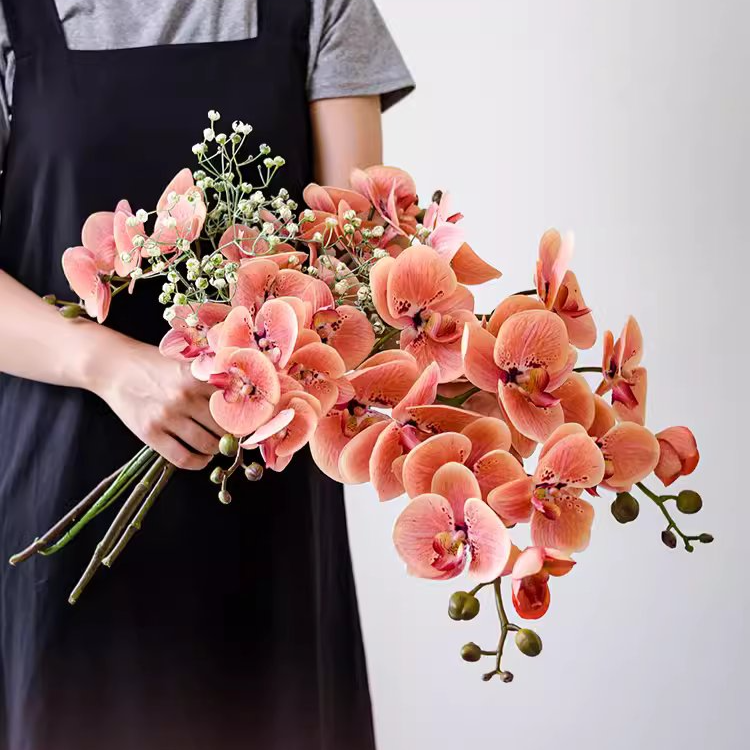 Crafted from high-quality silk cloth and durable plastic, this lifelike artificial flower offers the beauty of fresh orchids without the need for maintenance. Whether displayed on its own in a sleek vase or combined with other florals for a lush arrangement, this realistic orchid stem is perfect for home décor, weddings, and events.