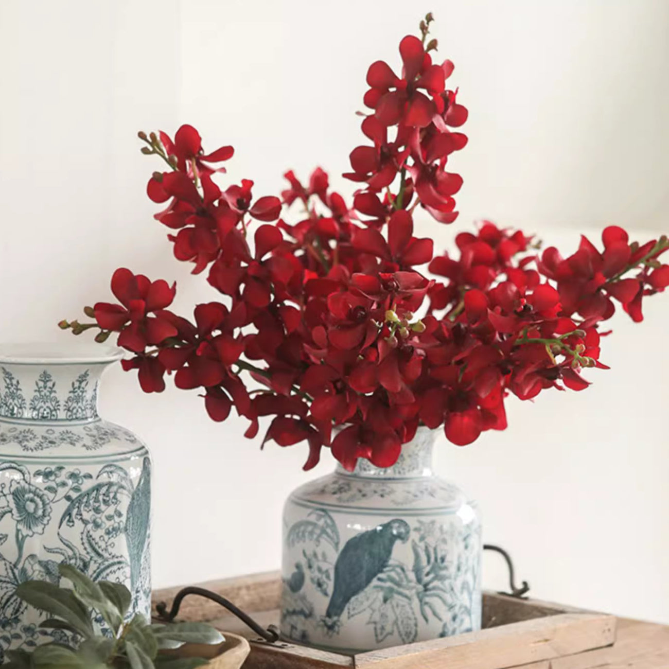 Crafted from high-quality silk cloth, plastic, and other durable materials, this realistic orchid stem mimics the delicate beauty of real Vanda orchids without the need for maintenance. Whether used as a statement piece in a vase or incorporated into a floral bouquet, this artificial orchid stem is perfect for home décor, weddings, and event styling.